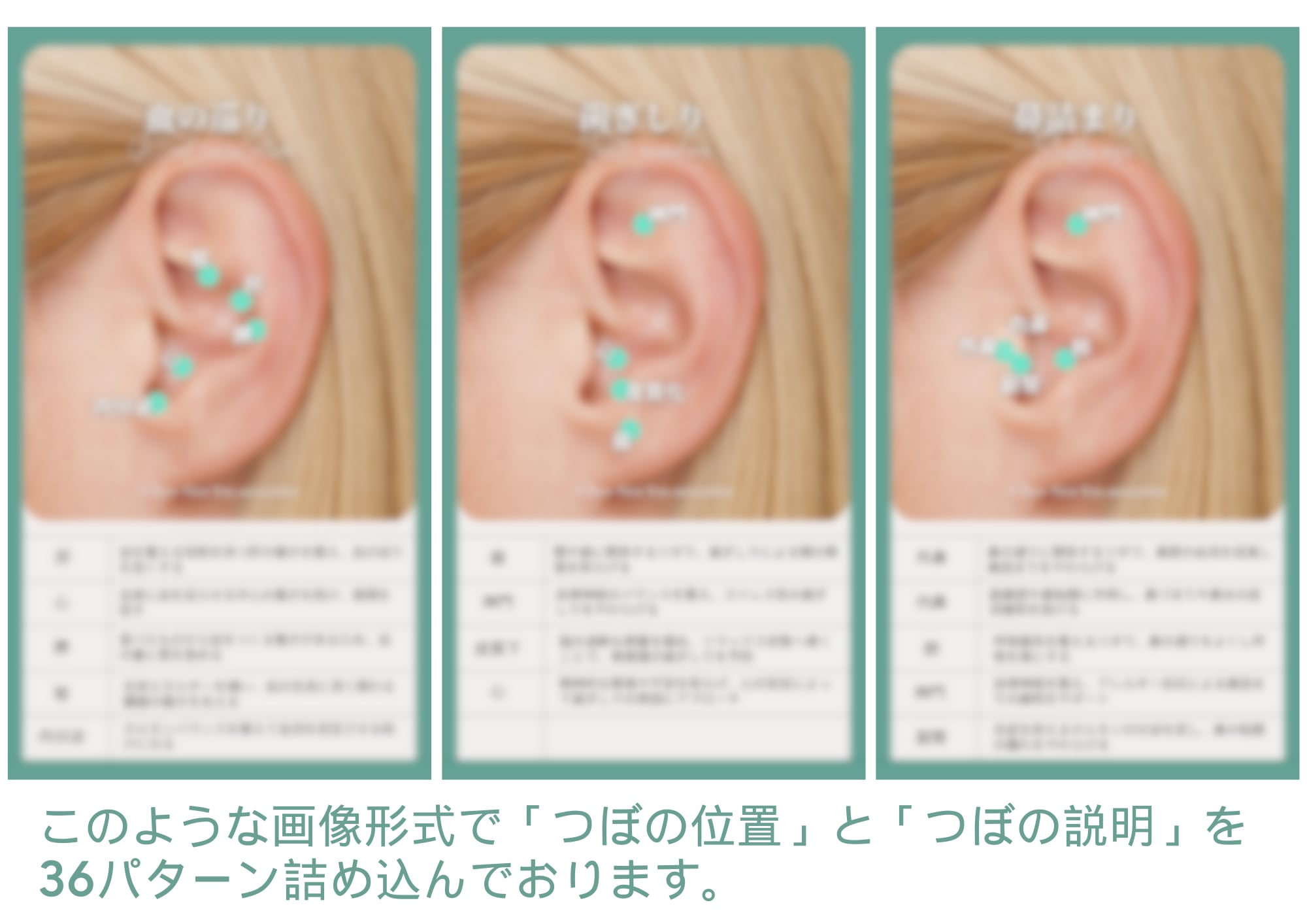 New View You association制作の『耳つぼ組み合わせ事典(36種類のパターン)』です。