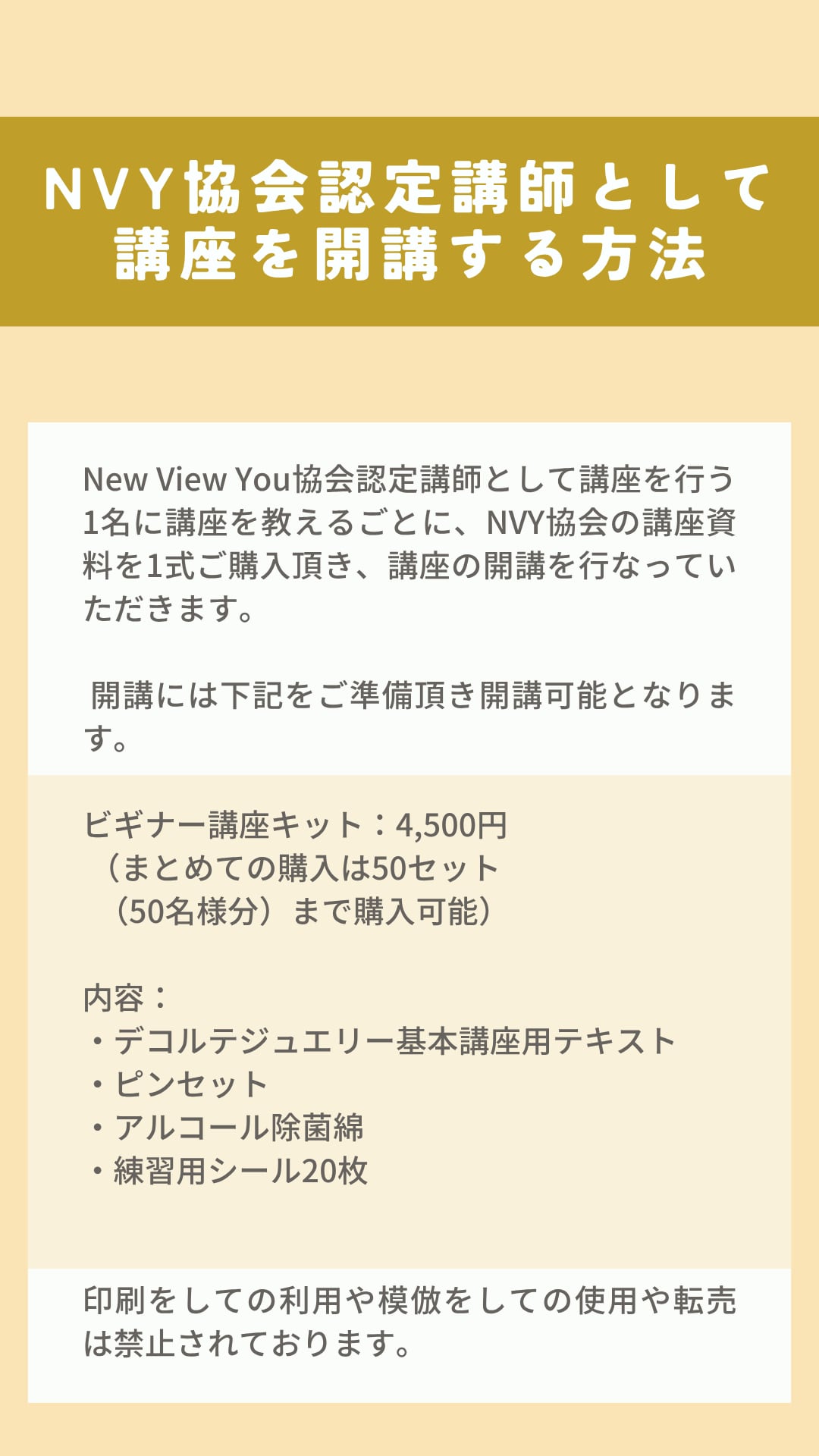 こちらのキットには、講座に必要なデコルテジュエリーや教材類が含まれており、協会基準に基づいた講座運営をサポートするものとなっております。