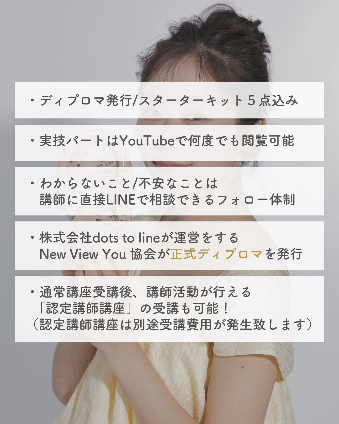 過去にNew View You 協会の耳つぼジュエリー講座を受講いただいた方は、受講生価格 10,000円 にて動画をダウンロードいただけます。