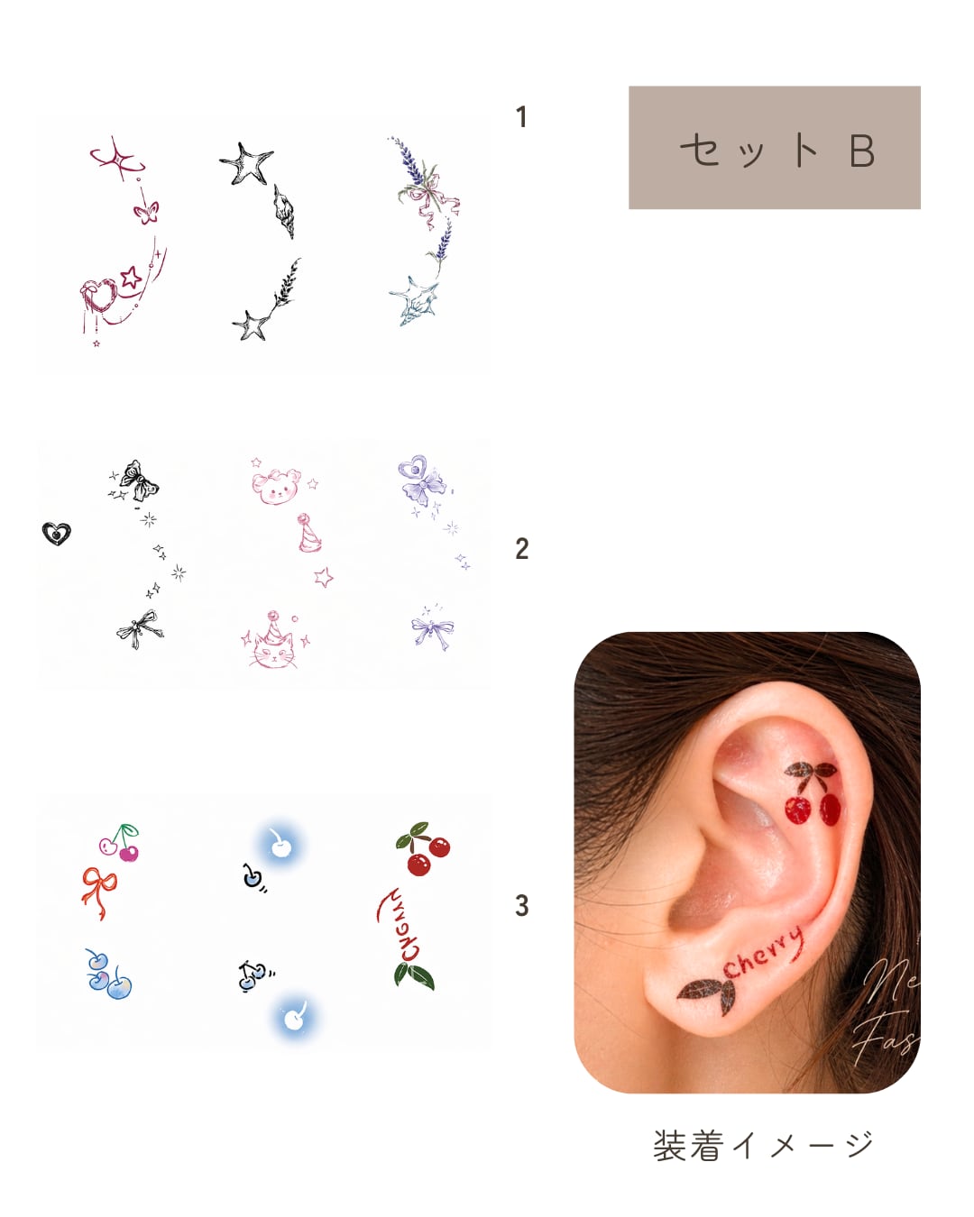 耳元をさりげなく彩る貼るだけで楽しめるアクセサリー感覚のタトゥーステッカー